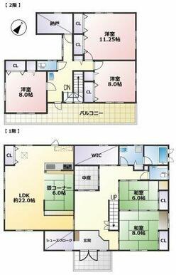 | 間取り(内訳) | 6SLDK(和6×2、8、S4.5、3.5、洋11.2、8×2) | 建物面積 | 206.60㎡ |